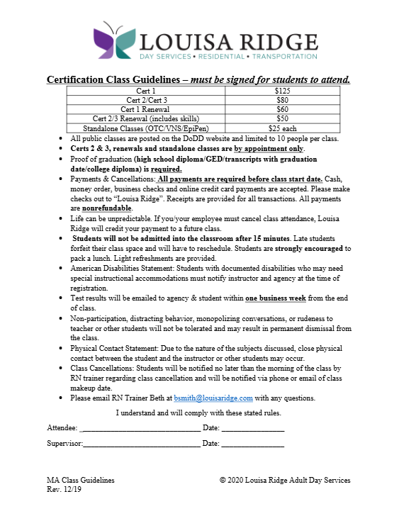 Louisa Ridge is now offering DODD Medication Certification Classes!